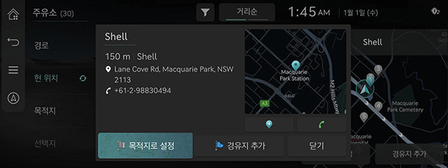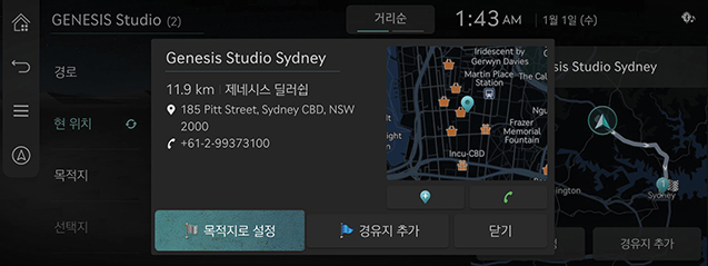현재 표시하고 있는 지도에서 목적지를 설정할 수 있습니다.