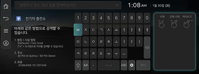 - 홈 화면에서 [목적지] > [통합 검색]을 누르세요.