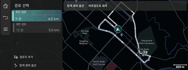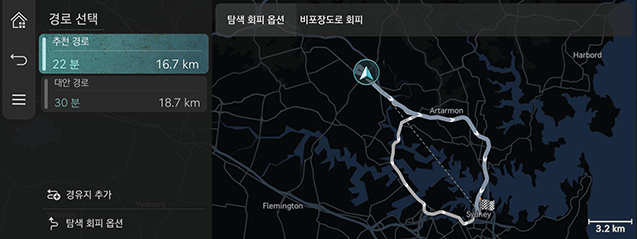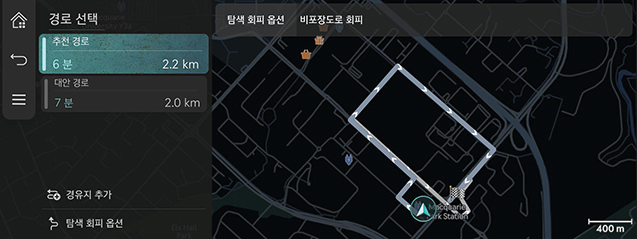 - [탐색 회피 옵션]: 피하고 싶은 경로 옵션을 설정합니다.
