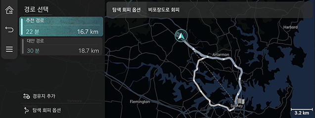 - [경유지 추가]: 경유지를 추가하여 경로를 편집합니다. 목적지를 설정한 경우에만 제공되는 기능입니다.