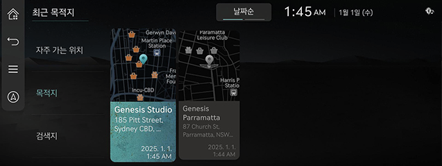 - 홈 화면에서 [목적지] > [최근 목적지]를 누르세요.