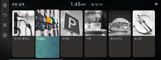 - 홈 화면에서 [목적지] > [주변 검색]을 누르세요.
