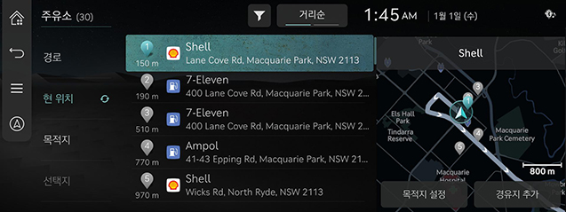 다양한 시설 범주를 사용하여 목적지를 설정합니다.