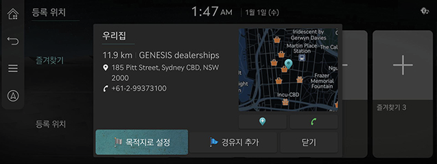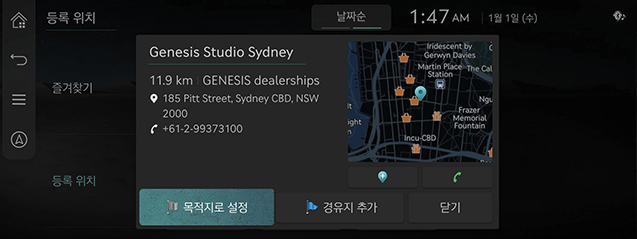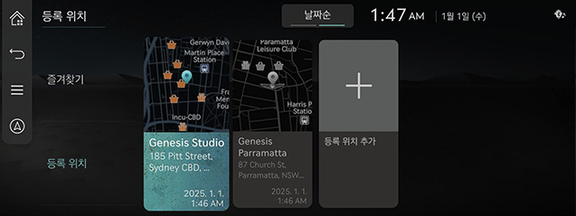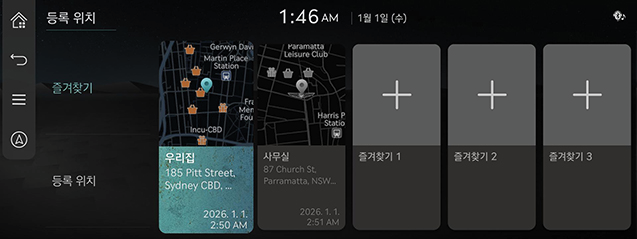 - 홈 화면에서 [목적지] > [등록 위치]를 누르세요.
