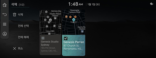 - 원하는 장소를 선택하고 [삭제]를 누르세요.