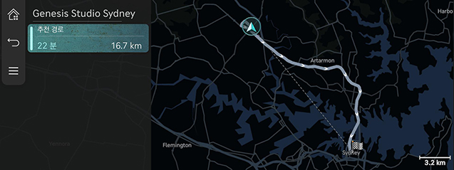 ]를 길게 누르면 경로 안내가 중지됩니다. - 지도 화면에서 [