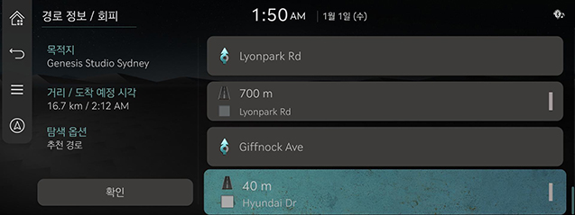 - [재탐색]: 현재 설정된 목적지까지의 경로를 재탐색합니다.