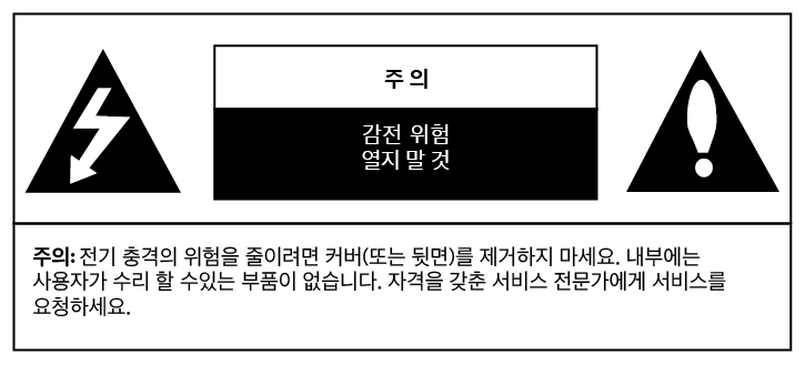 감전의 위험을 줄이려면 이 제품 뒷면의 커버를 제거하지 마세요.