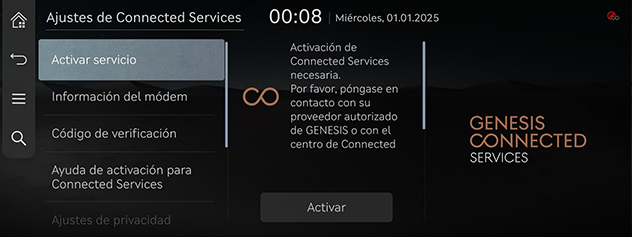 Para activar los servicios conectados, póngase en contacto con su socio de servicio o un socio de Genesis autorizado para la asistencia.