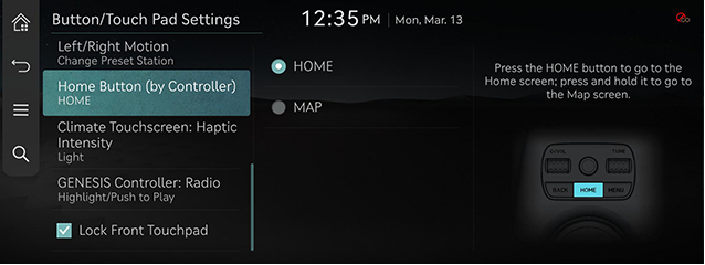 - On the button/touch pad settings screen, press [Home Button (by Controller)].