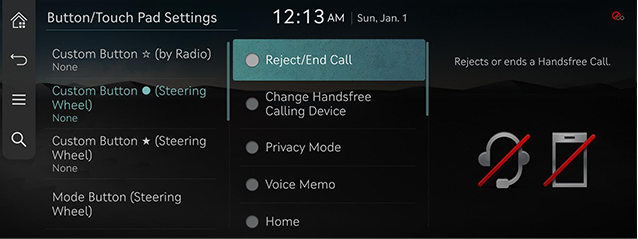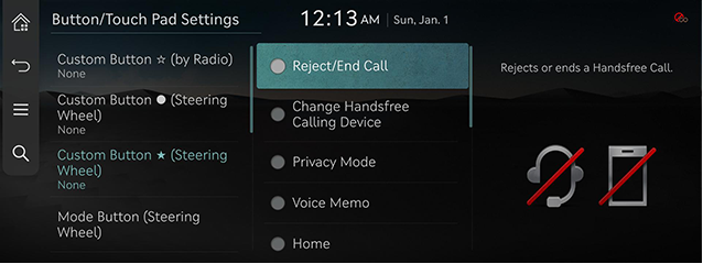 - On the button/touch pad settings screen, press [Mode Button (SteeringWheel)].