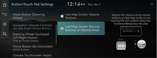 - On the button/touch pad settings screen, press [Navigation Volume Controls].