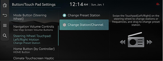 Set the touchpad(left/right) on the steering wheel to a function when listening to radio.