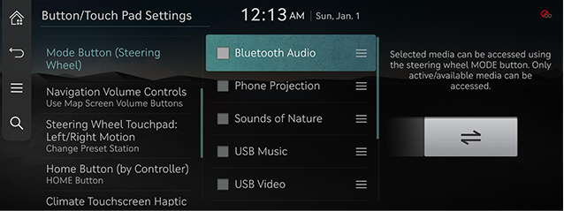 Selects the media can be accessed using the [MODE] button on the steering wheel.
