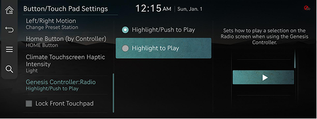 - On the button/touch pad settings screen, press [Genesis Controller:Radio].