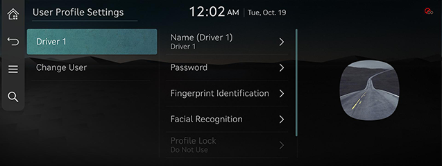 - [Delete Driver 1/2 Profile]: All saved data and profile settings are deleted, and the system is initialized.