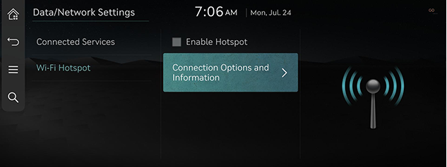 You can set Connected Services and the Wi-Fi hotspot options.