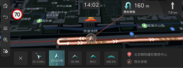 - [2D 前方朝上]:根据车辆方向显示地图。