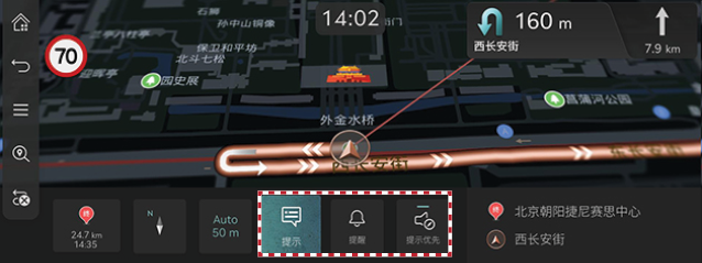 - [提示优先]:将导航的音量设置为高于音频音量。