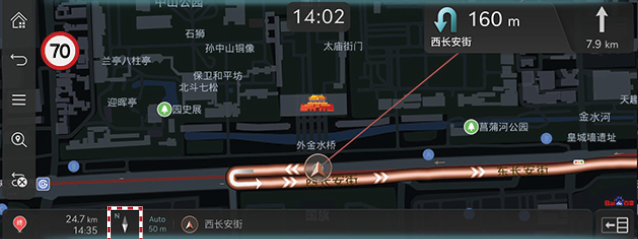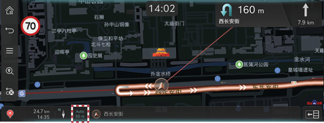 按下主机上的 [MAP] 键,地图屏幕将显示当前的车辆位置。