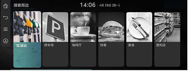 - 按下主屏幕上的 [目的地] > [搜索周边]。