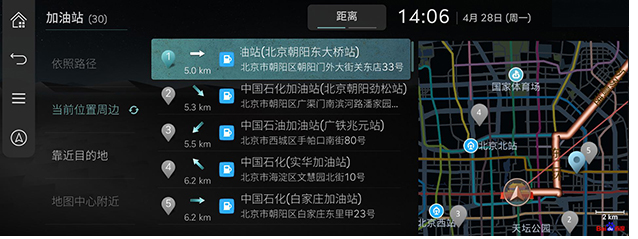 - [靠近目的地]:搜索目的地或途经点附近的 Genesis 4S 店。
