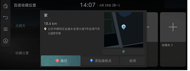 - 按下主屏幕上的 [目的地] > [百度收藏位置]。