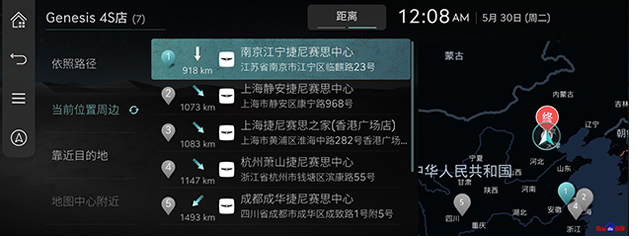 - [依照路径]:搜索路线附近的 Genesis 4S 店。