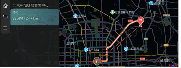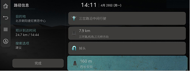 显示剩余距离、所需预估时间和预计到达设定目的地的时间。