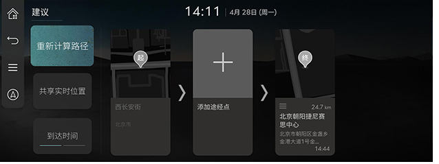 设置目的地后,最多可以添加 2 个途经点。如果已添加 2 个途经点,请删除已添加的途经点后再添加所需途经点。