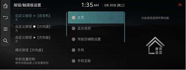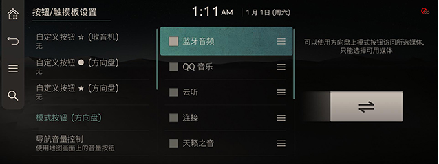 - 在按钮/触控板设置屏幕上,按下 [模式按钮(方向盘)]。