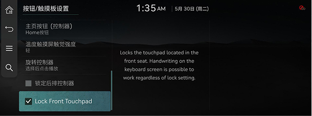 在按钮/触控板设置屏幕上,打开或关闭 [锁定后座控制器]。