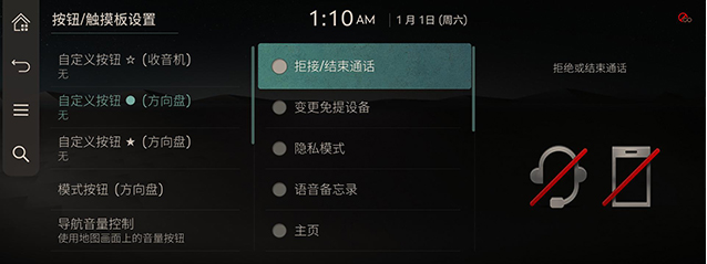 - 在按钮/触控板设置屏幕上,按下 [自定义按钮K (通过收音机)]、[自定义按钮