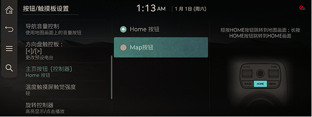 - 在按钮/触控板设置屏幕上,按下 [旋转控控制器:收音机]。