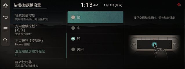 - 在按钮/触控板设置屏幕上,按下 [温度触摸屏触觉强度]。