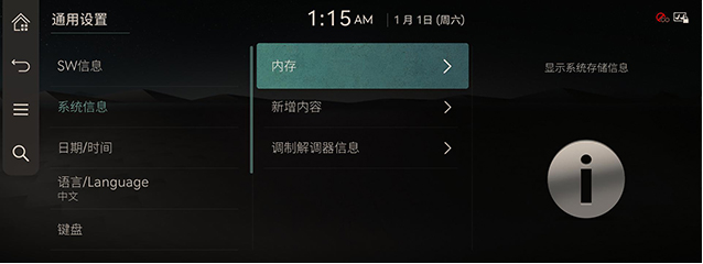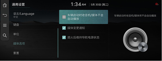 - [车辆熄火后继续播放媒体] : 车辆熄火后信息娱乐系统保持打开状态系统将在驾驶员离开后或在一段时间后自动关闭。
