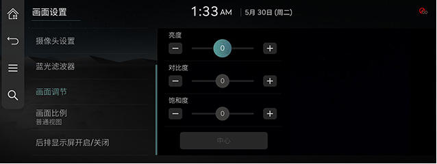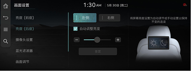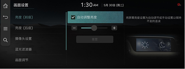 - 在显示设置屏幕上,按下 [亮度(前座)]/[亮度(后座)]。