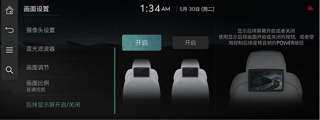- 在显示设置屏幕上,按下 [后排画面开启/关闭]。