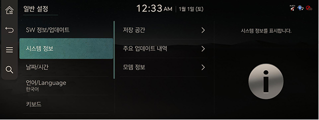 - 일반 설정 화면에서 [시스템 정보]를 누릅니다.