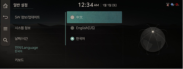 시스템 표시 및 음성 안내 언어를 설정할 수 있습니다.