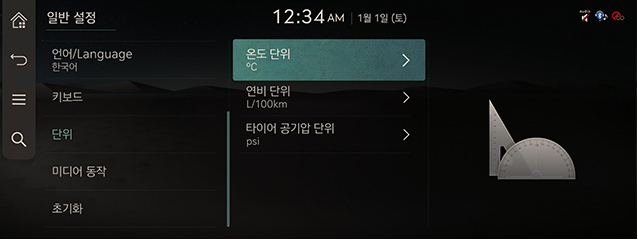 - 일반 설정 화면에서 [단위]를 누릅니다.