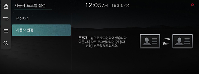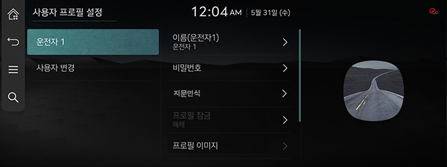 - 사용자 프로필 설정 화면에서 [게스트]/[운전자 1]/[운전자 2]를 누릅니다.
