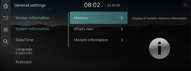 - Vajutage üldsätete ekraanil [System information].