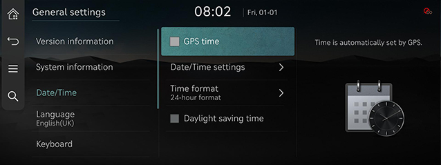 - [Date/Time settings]: Määrab süsteemile rakendatava aja.
