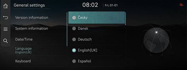 Saate seadistada süsteemi kuvamiskeele Keel.