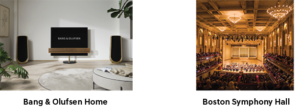 - [Bang & Olufsen Home]: Algoritmidel põhinev kaasahaarav salongikogemus. Need algoritmid on loodud üksikasjalike ja täpsete mõõtmistega selle kohta, kus Bang & Olufseni uuendused on koduakustika raames täiuslikud.