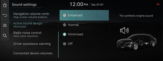 - [Enhanced]/[Normal]/[Minimised]/[Off]: Sünteetiline mootoriheli.