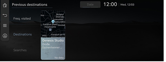 - Apăsați [Destination] > [Previous destinations] pe ecranul de pornire.