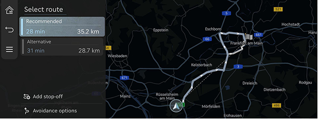 - [Avoidance options]: Setați opțiunile de rută pe care doriți să le evitați.
