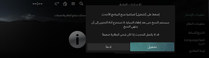حتى إذا تم إيقاف تشغيل السيارة وتشغيلها مرة أخرى أثناء التحديث، فسيتم مواصلة التحديث.